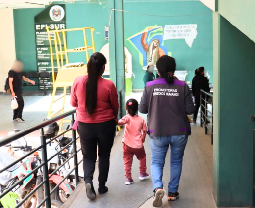 Este punto de atención junto al de la Fiscalía, aglutinan la mayor cantidad de casos recibidos por las promotoras de Derechos Humanos, con un promedio de 15 a 20 casos por día, los mismos que demandan información, orientación, acompañamiento y seguimiento de los procesos.